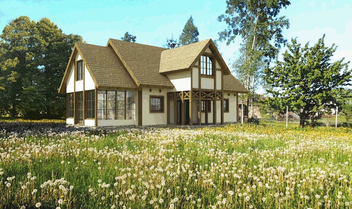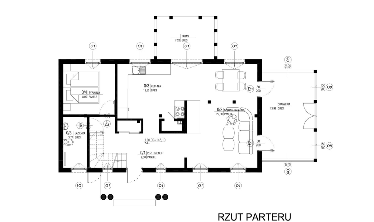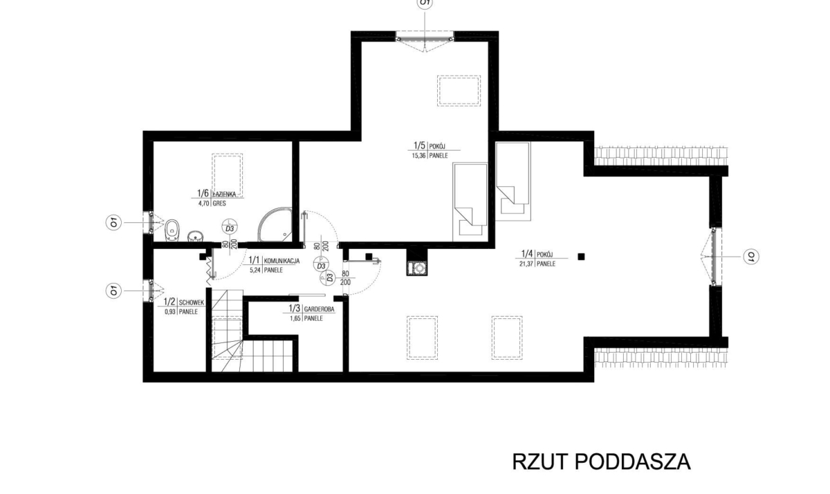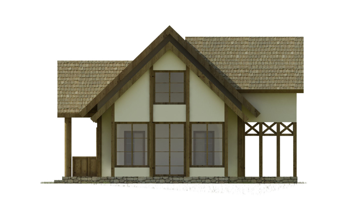 Projekt budynku w stylu wiejskiego dworku. Konstrukcja budynku została przeniesiona ze starego drewnianego budynku. Wpłynęło to znacząco na układ pomieszczeń i konieczność podparcia konstrukcji wewnątrz. Elewacje zewnętrzne w białym tynku z drewnianym detalem.