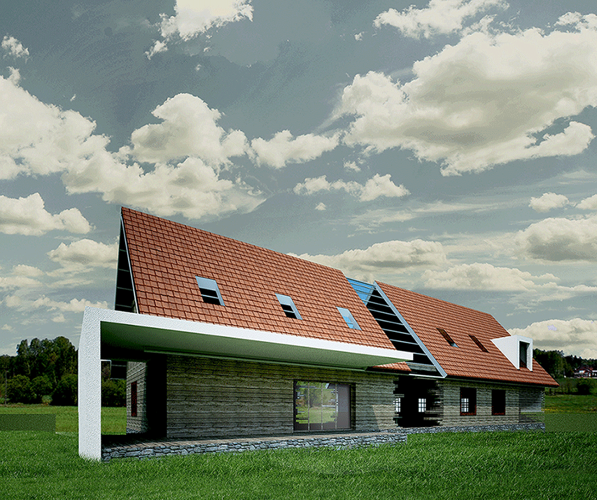 Projekt koncepcyjny domu weselnego w stylu nowoczesnej stodoły. Projekt zakłada tradycyjną bryłę stodoły ubogaconą nowoczesnymi elementami. Duża sala bankietowa w parterze wraz z kuchnią, na górze pokoje sypialne. Całe założenie architektoniczne w urokliwym otoczeniu podlaskiego krajobrazu.