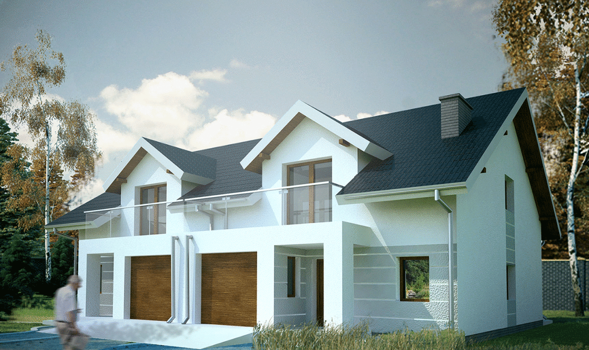 Projekt bliźniaka zrealizowanego w Białymstoku. Budynek został zaprojektowany w eleganckim i stonowanym stylu, zachowując odpowiednie proporcje bryły. Bliźniak zapewnia komfortowe warunki użytkowania, obszerne sypialnie, jasne salony i kuchnie oraz duże wyjście na ogród.